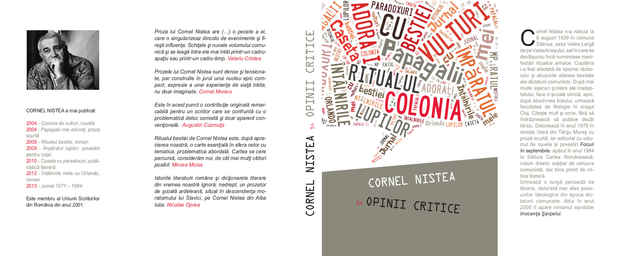 În luna mai a.c., a apărut la Editura Casa Cărţii de Ştiinţă din Cluj-Napoca volumul CORNEL NISTEA în OPINII CRITICE, o culegere de 300 de pagini de cronici, articole şi studii despre cărţile autorului.